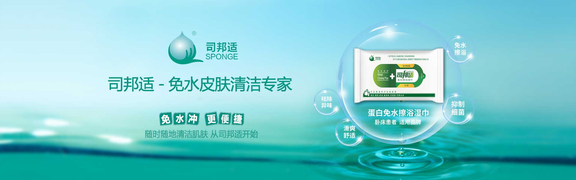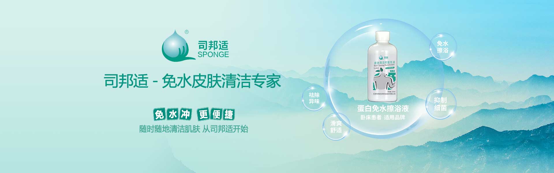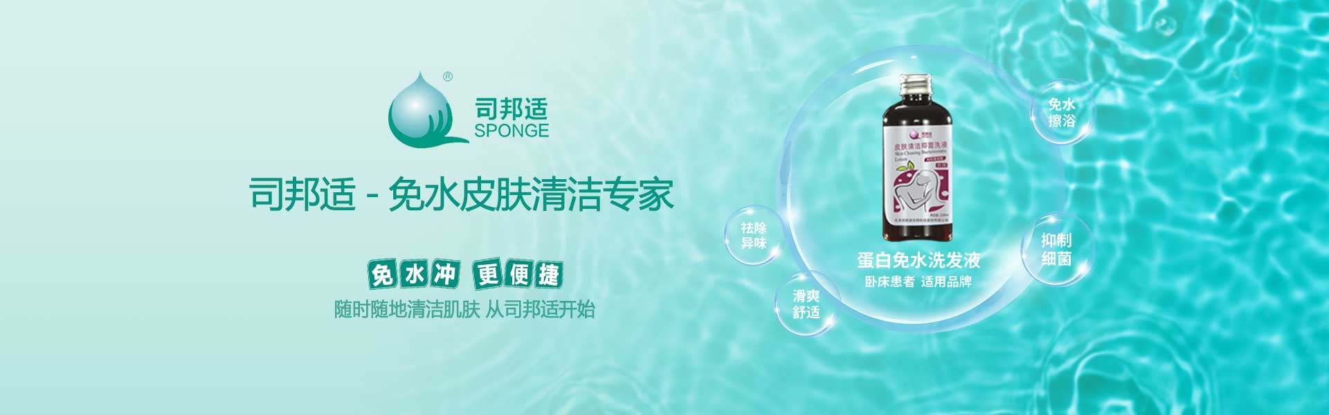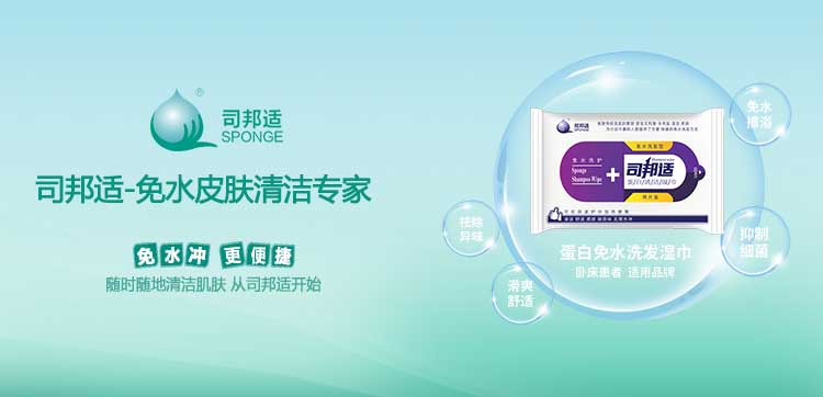 ? ? ? ?本公司研發(fā)的司邦適蛋白表面活性因子,不僅對(duì)人體皮膚及粘膜沒(méi)有刺激,同時(shí)具有對(duì)皮膚很強(qiáng)的清潔能力;可以祛除人體皮膚上的異味,并且具有較強(qiáng)的抑菌功效。使用后無(wú)需用水沖洗皮膚仍感到舒適爽滑;基于上述原因我們研發(fā)的司邦適免水清潔系列產(chǎn)品。主要適用于各種主觀或者客觀上不方便全身或局部皮膚清潔的人群。